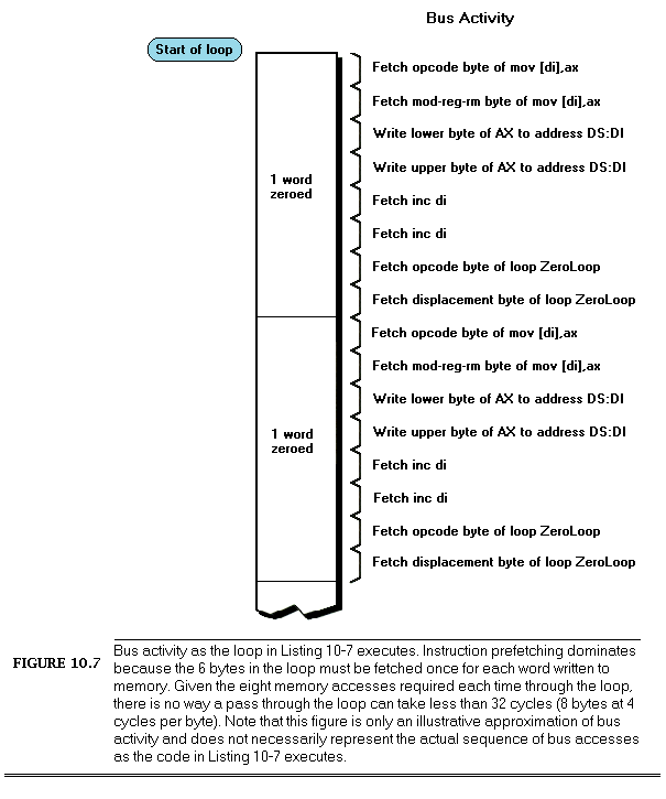 Basically, there are only two possible objectives to high-performance assembler programming: given the requirements of the application, keep to a minimum either the number of processor cycles the program takes to run or the number of bytes in the program, or some combination of both. We’ll look at ways to achieve both objectives, but we’ll more often be concerned with saving cycles than saving bytes, for the PC offers relatively more memory than it does processing horsepower. In fact, we’ll find that 2-to-3 times performance improvements over tight assembler code are often possible if we’re willing to expend additional bytes in order to save cycles. It’s not always desirable to use such techniques to speed up code, due to the heavy memory requirements — but it is almost always possible.