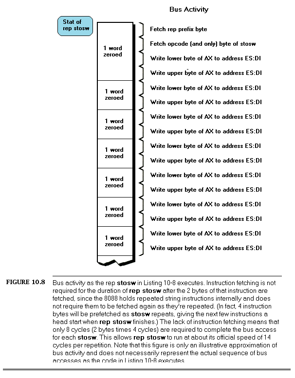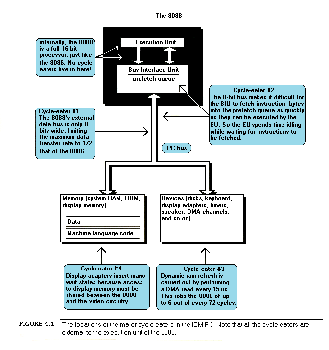 The single most critical aspect of the hardware, and the one about which it is hardest to learn, is the 8088 processor. The 8088 has a complex, irregular instruction set, and, unlike most processors, the 8088 is neither straightforward nor well-documented as regards true code performance. What’s more, assembler is so difficult to learn that most articles and books which present assembler code settle for code that works, rather than code that pushes the 8088 to its limits. In fact, since most articles and books are written for inexperienced assembler programmers, there is very little information of any sort available about how to generate high-quality assembler code for the 8088. As a result, knowledge about programming the 8088 effectively is by far the hardest knowledge to gather. A good portion of this book is devoted to seeking out such knowledge. Be forewarned, though: no matter how much you learn about programming the IBM PC in assembler, there’s always more to discover.